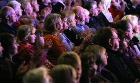 ![]() 随着大幕的起落,舞台上展开一幅幅中国人文、历史,以及天上人间的画卷,现场一千三百名中西观众随着剧情的起伏而感叹、惊喜,时而悲愤,时而沉思,这台全善全美的中华神传文化艺术震撼着现场的男女老少。 |