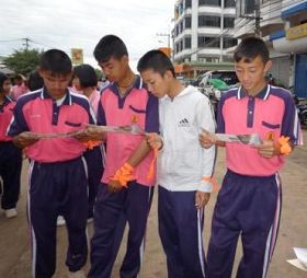 SAKON NAKORN PATTANA 中学校运会,学生阅读真相材料