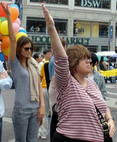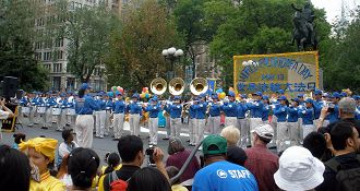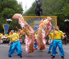 【明慧网二零零九年五月十日】(明慧记者冯道生纽约报导)在“世界法轮大法日”——五月十三日到来之际,来自美国纽约及周边地区的法轮功学员和各界民众一起,于二零零九年五月九日在纽约曼哈顿著名的联合广场上,举行隆重的庆祝活动,表达对师父慈悲救度的感恩,展示法轮大法的美好,揭露中共的迫害,告知世人得救的真相。