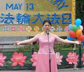 太太修炼法轮功、但是本人尚未修炼的李先生,每次总是陪伴着太太参加类似这样的活动。李先生说:“我觉的‘世界法轮大法日’非常重要,因为这是李洪志老师的生日,又是法轮大法洪传开始的日子。应该进行更大规模的庆祝活动,让纽约所有的人都知道法轮功教人‘真、善、忍’。”李先生还说:“除了宣扬‘真、善、忍’,还有更重要的一点,就是要告诉全世界:中共在残酷迫害法轮功,中共的迫害违反人道、天理。”