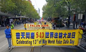二零零九年五月九日,墨尔本法轮功学员举行盛大游行庆祝法轮大法洪传十七周年。