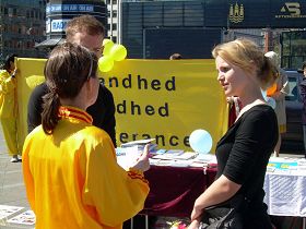 ![]() 哥本哈根大学的学生约翰(Johan)与玛瑞亚(Maria)说:“修炼真善忍真好,我们也想学。”“在中国大陆发生的对法轮功学员的人权迫害让人不能接受” |