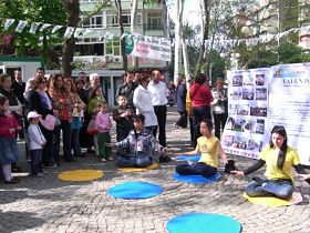 悠扬的炼功音乐、舒缓优美的功法、修炼者祥和的精神风貌,吸引了众多的路人。一旁悬挂的展板上介绍法轮大法是源于中国的传统修炼方法,以“真善忍”为原则,已洪传世界一百多个国家。然而在中国,中共恶党不能容忍人们对“真善忍”的信仰,发动了对善良的法轮功学员的残酷迫害,甚至活体摘取法轮功学员的器官牟取暴利。中共的种种暴行被越来越多地揭露出来,受到国际社会的谴责。