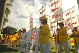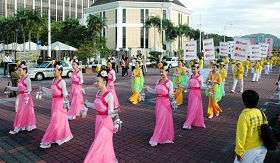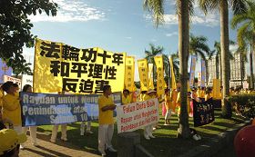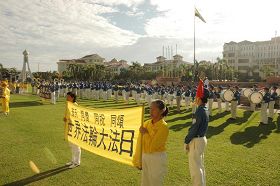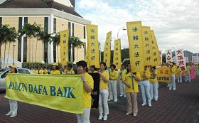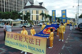 ![]() 法轮功学员聚集在怡保市政局前同欢共庆“世界法轮大法日” |