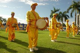![]() 法轮大法学员表演统腰鼓舞,庆祝大法日。 |