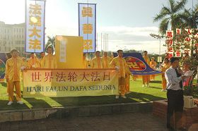 ![]() 法轮大法学员在怡保市政局前同欢共庆“世界法轮大法日”,场面壮观。 |