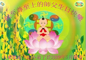 李洪志先生家乡的同事:祝你们师父好,祝你们节日快乐!