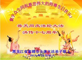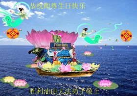 ![]() 波士顿法轮功学员恭祝师尊五十八岁华诞 |