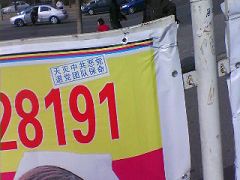 ![]() 道路旁边堆满了人,兴奋的看着法轮功游行队伍经过 |