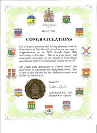 【明慧网二零零九年五月十三日】(明慧记者英梓报道)二零零九年五月十三日是第十届世界法轮大法日,加拿大交通部长约翰•贝尔德(John Baird)代表加拿大政府向法轮功学员表示祝贺。