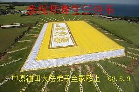 二零零九年五月九日这一天,阳光明媚,来自全台湾的六千余名法轮功学员在南台湾风光秀丽的垦丁风景区埔顶大草原,将指导大法弟子修炼的《转法轮》这本书,排成两百公尺长,一百二十公尺宽的金光灿烂的立体书,场面殊胜庄严。