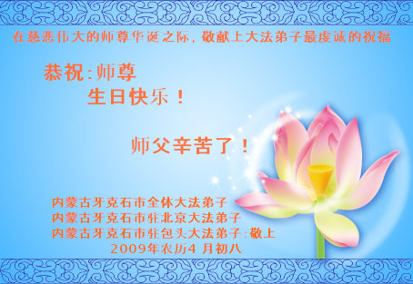 • 大陆大法弟子恭贺师尊寿辰(十二,逾160地区)