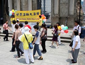 庆“世界法轮大法日” 澳门学员传真相(图)