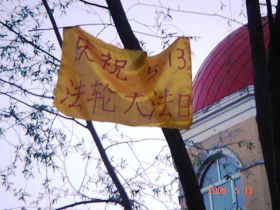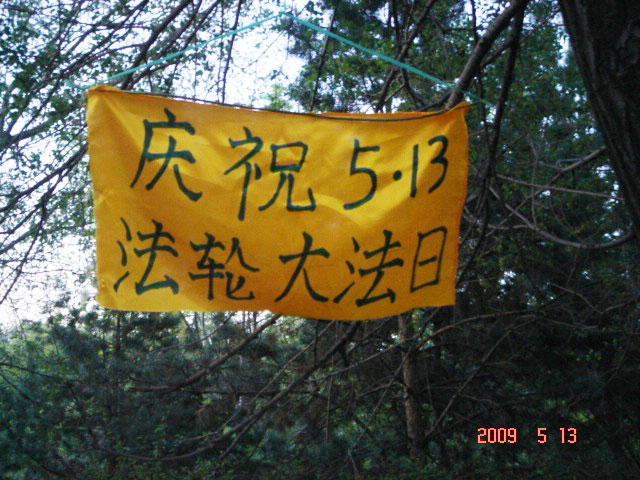 【明慧网二零零九年五月十五日】“五·一三”──世界法轮大法日,在这普天同庆的日子,各个国家都在庆祝法轮大法洪传世界十七周年,而远在中国大陆被中共恶党独裁统治的地区也出现大量庆祝世界法轮大法日、退党保平安的条幅及图片。