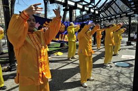“尽管在中国,法轮功学员还在遭受着严酷的迫害,但是,法轮大法却在反迫害中走向了世界,洪传一百多个国家,修炼者上亿。在此,我们特别感谢加拿大民众站在了正义的一边。”