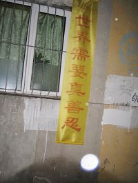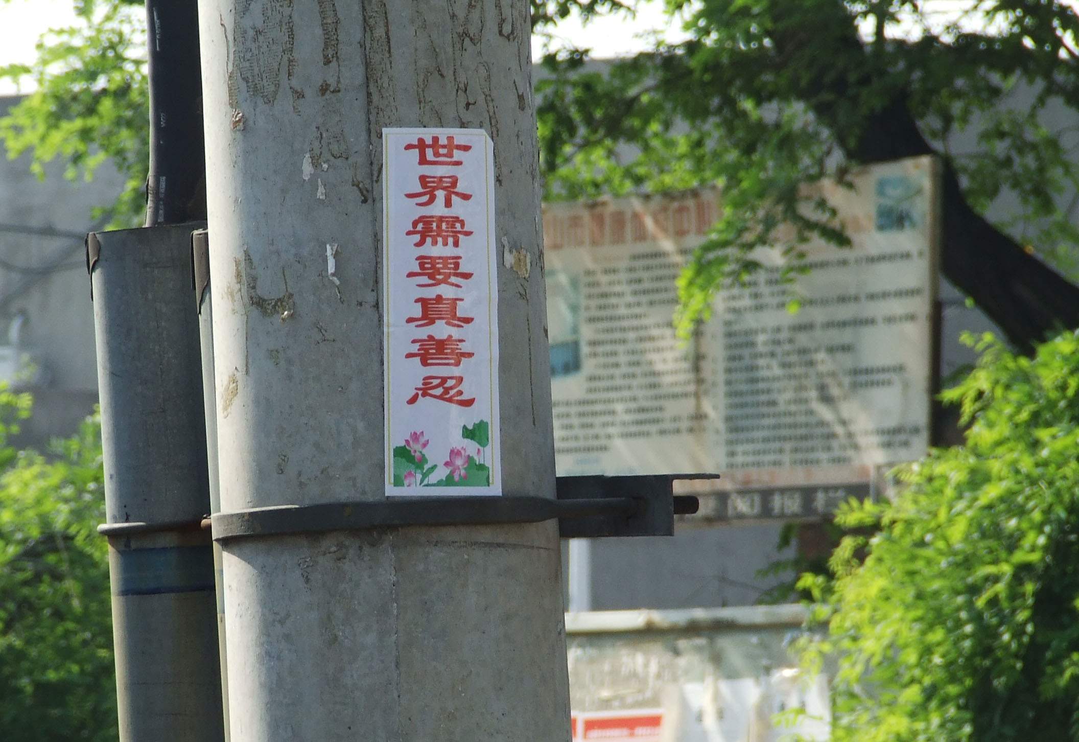 5.13世界法轮大法日,河北某大城市中心大法真相条幅飘扬。大法弟子救度世人,感谢师尊传法!庆祝大法洪传世界!