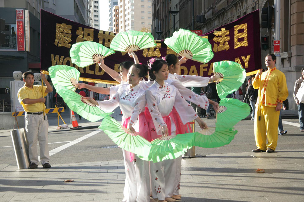 ![]() 悉尼法轮功学员在莫尔公园(Belmore Park)集体炼功 |