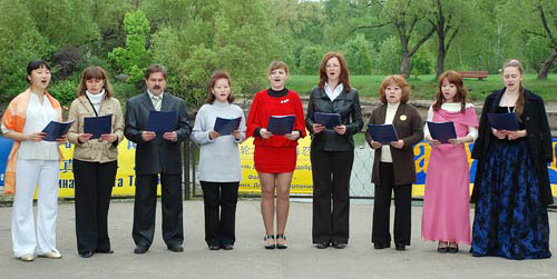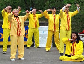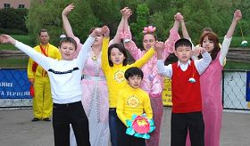 ![]() 莫斯科法轮功学员向师父合十问好 |