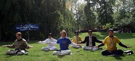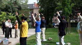 【明慧网二零零九年五月十七日】二零零九年五月十六日,比利时法轮大法弟子在著名的大学城鲁汶的城市公园里举行活动,庆祝世界法轮大法日。学员们在草地上炼功,并摆出展板和纸莲花。吸引了很多过路的市民和游人驻足观看。学员向他们介绍了法轮功如何使修炼者身心受益,已洪传全世界一百多个国家,却在中国大陆受到中共持续十年