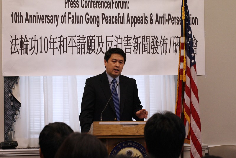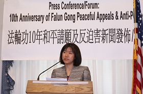 二十多位曾经在中国大陆遭受迫害或家人仍在遭受迫害的法轮功学员坐在会场前排,他们讲述了自己的亲身经历:有年轻的妈妈为迫害致死的丈夫讨公道的;有尚未成年的孩子为仍被关押的父母寻求帮助的;也有曾在中共监狱惨遭迫害,九死一生,现流亡海外的法轮功学员呼吁制止迫害的……每个家庭在过去十年中共对法轮功的镇压迫害中的悲惨遭遇令人动容。