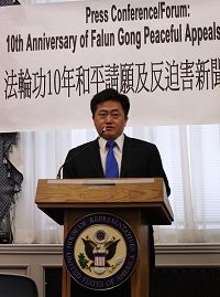 ![]() 法轮功发言人张而平说:“每一个时代都有关键的时刻、关键的事件。我相信中国的法轮功问题将影响到当今人类福祉,我们的基本人性正在经受考验。” |