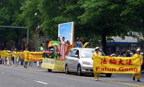 法轮功学员参加美国康州温泽市的筛德德比游行