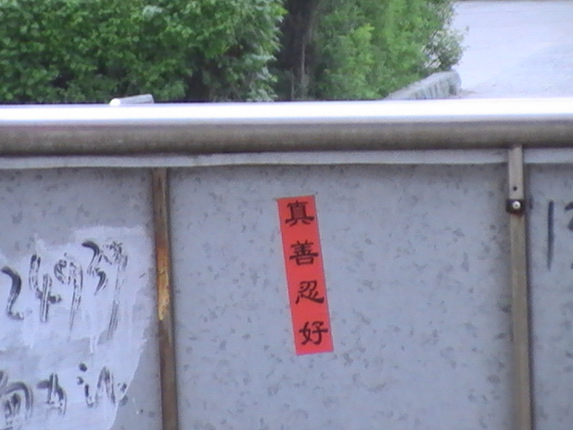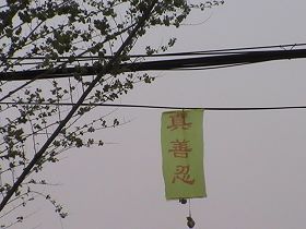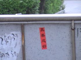 【明慧网二零零九年五月二十五日】辽宁省某县五月十三日前,大街小巷陆续出现不干胶条幅庆祝世界法轮大法日,同时呼吁停止