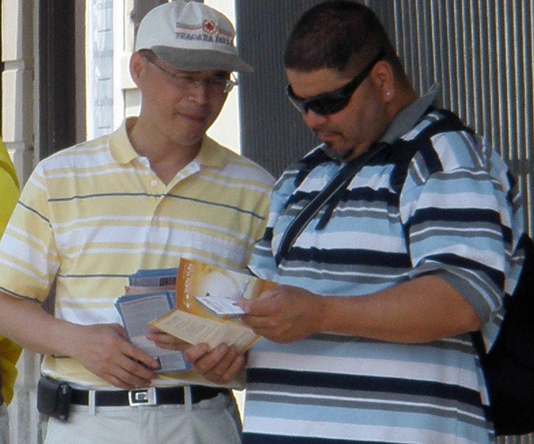观众劳拉(Lora)女士对法轮功的修炼既炼功祛病健身又按照“真、善、忍”提升人的道德特别感兴趣。“我特别喜欢法轮功,虽然这是我第一次接触他们。”劳拉一边阅读手里的法轮功简介材料,一边连声说:“我要认真地多了解。”