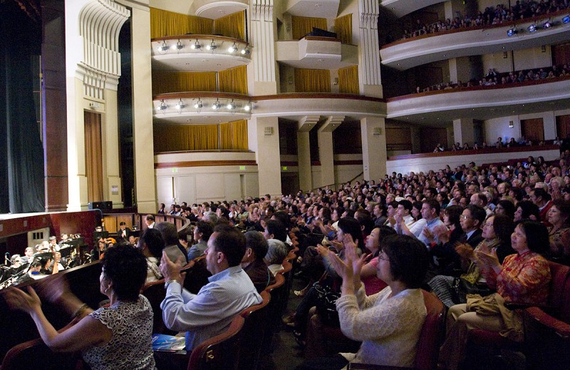 ![]() 神韵艺术团纯善纯美的演出引起了观众的深深共鸣,他们陶醉其中。 |