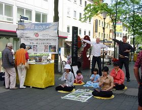 二零零九年五月二十三日,法轮功学员在德国中部最大的城市卡塞尔国王大街的市政厅旁边举办了法轮大法信息日活动,向人们介绍什么是法轮功以及发生在中国的迫害真相。