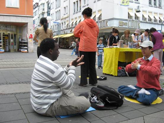 ![]() 右边穿黑色外套的是一位卡塞尔的学生,他详细的了解了法轮功后,当场学功 |