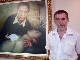 ![]() 来自俄罗斯、国立中山大学亚太海洋研究中心客座教授衣果而(Igor Bbckih)博士与画作《保外就医》合影 |