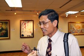 高雄市立海青工专教务主任、立体雕塑专家颜朝卿先生也专程来看画,他说:“每一幅画作栩栩如生,尤其表情画得非常传神、逼真,所要传达的讯息又很深远有内涵,油画要画到这样,需有很深的功力。我最受触动的画作是《蒙难在中原》,它的构图方式很特别,十字构图,传达为了真理而牺牲的勇气,很令我感动,写实功力深厚。”