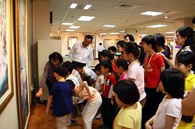 ![]() 明慧班小朋友,由导览人员为之解说画作内涵,看画过程小朋友一问一答,很活泼也很专心 |