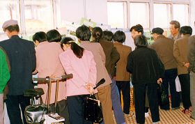![]() 展板还没有挂起来,就争先恐后的看(1997年) |