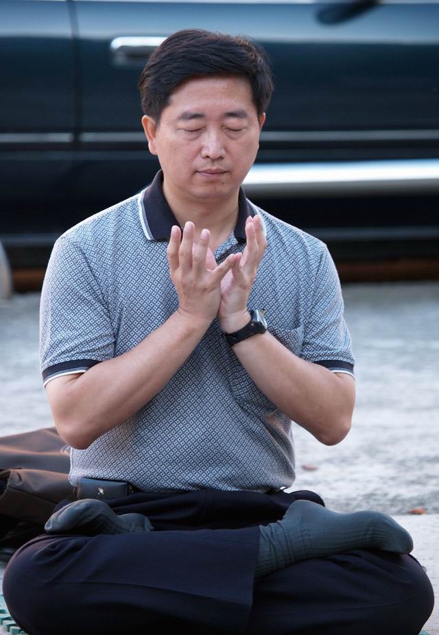 所幸二零零零年三月,自来水公司的台中分处同事许世铭北上桃园出差,带来《转法轮》这本书在办公室传阅,六月初传到福强手上,看完一遍,他已舍不得搁下,紧接着看完第二遍、第三遍。高福强说:“青少年时期我就喜欢阅读哲理方面的书籍,下意识在寻找什么,当看到《转法轮》阐述的内容触动不已,心里很清楚这就是我要的,这就是我寻寻觅觅所想要的。”他如饥似渴地看完许世铭再次出差所带来的每一本法轮功创始人李洪志老师的海外讲法、《精進要旨》和《大圆满法》,跟随着教功VCD片学会五套功法,每天到住家附近的“中坜艺术馆前炼功点”参加集体炼功,并请辅导员纠正炼功动作,此外还到书局购回法轮大法的讲法VCD,每隔一、二个月就花上一个星期左右,重温看一遍。
