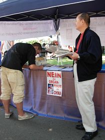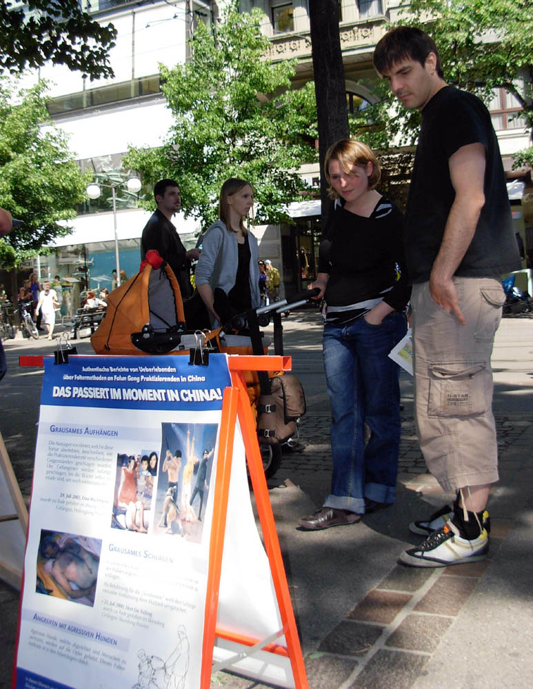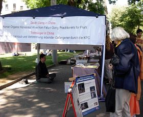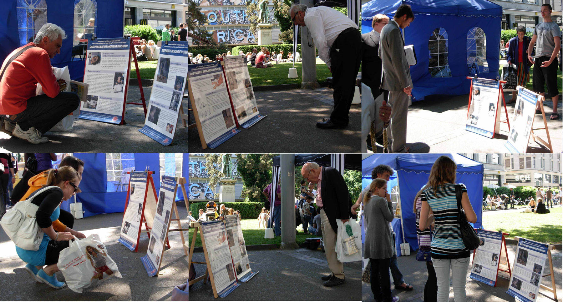 ![]() 中共活摘法轮功学员器官――让很多苏黎世民众震惊。 |