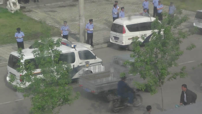 早8点30分相关人员进场。不许律师携带录音、录像设备,不许携带手机,律师说:“从没受到过这样不公正的对待”。三位大法弟子的家属只允许每家二人入场旁听,百姓一律不准入场、不准靠近二百米警戒线。同时金山屯通往外地的所有路口均被严格把守盘查出入人员。金山屯委书记李弘到场,省市也来了重要官员、伊春市市长也到场旁听。
