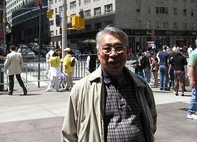 家住法拉盛、在曼哈顿工作的王德圣先生,是在看到大纪元时报的活动预告后,特意赶来为法轮功大游行助威的。