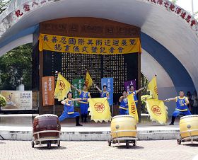为期十二天的“真善忍国际美术展”于二零零九年六月三日起在国立中央图书馆中和分馆B1乐学室展出。六月七日(星期日)上午十点举行“记者会暨开幕茶会”,台北县议员廖筱清、中和市市长室欧镛锡秘书、摄影家禹海,以及周大观基金会环保乐师王恒义先生等共襄盛举。