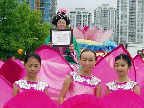 ![]() 法轮功队伍获得的游行一等奖奖牌 |