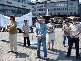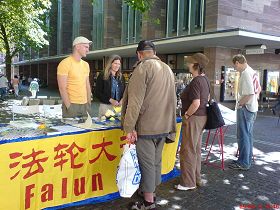二零零九年六月十三日,德国黑森林南部地区部份法轮功学员在被称为“黑森林门户”的旅游城市弗莱堡的市中心举办信息日活动,通过各种图片、展板、报纸、传单等,告诉人们中共在长达十年里对法轮功学员的残酷迫害,呼吁共同制止迫害。