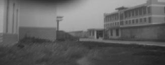 ![]() 监区警卫室和大门(大门后出现的楼是所谓“教学楼”) | ![]() 恶警主办公楼西侧(后面的楼是教学楼) | ![]() 生产车间的马路和小门 |
