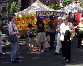![]() 法轮功学员在纽约曼哈顿的集市上摆设展位,传播真相。 |