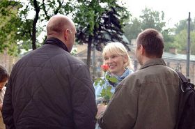 ![]() 了解了真相年轻人一定要把鲜花送给法轮功学员表示谢意 |