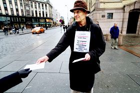 从那时开始的近十年里,彼得和修炼法轮功的同伴们在中共驻挪威使馆前以炼功进行和平抗议,在国会前举行新闻发布会、反酷刑展,在市中心设立信息台发放真相资料,并到其它国家向政府和民众讲清真相……。