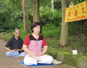 成瑶回想当年,同修学法炼功非常精進,一年三百六十五天从不间歇,包括大过年除夕夜都不中辍。她所服务的公司内部设有炼功点,每天清晨四点,就有七、八十至一百多人到点上炼功,区域的炼功场(体育场)平常是三、四百人,假日或洪法炼功时少说也有四、五百人。炼功前大家寒暄的寒暄,交流的交流,或者学法、或做自己的事,看似散漫零乱,可等炼功音乐一响起,全场马上自动站好位置,几百人齐刷刷的队伍,听不到一点讲话的声音。成瑶红了眼眶说:“那真是说不出的殊胜,感觉整个人被融合在无比祥和的场里熔炼着,纯净又圣洁。”