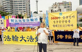 韩国法轮大法学会发言人吴世烈在发言中表示:“中共自一九九九年非法迫害法轮功以来,对数万人肆意拷问,未经正式判决便剥夺人身自由。在二零零一年又制造天安门自焚伪案,甚至活摘人体器官的滔天罪行令世界震惊。”他强调,“只有解体中共,才能彻底制止对法轮功的迫害,十三亿民众才能获救”。他呼吁媒体如实报导中共迫害法轮功的事实。