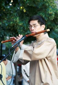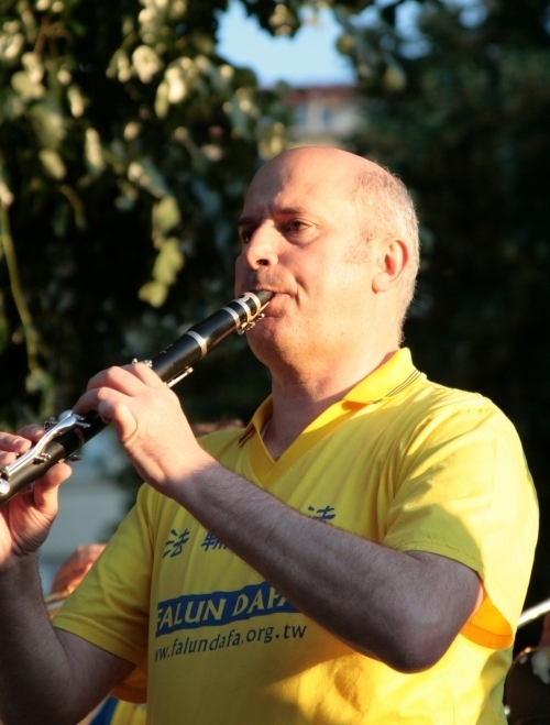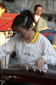 ![]() 法轮功学员演奏“法轮大法好”、“法鼓法号” |