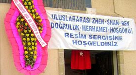 此次画展是应伊斯坎得伦区政府的邀请,在位于海滨黄金地带的“大众教育中心”(Public Education Center)宽敞的大厅内举办的。开幕式当天,伊斯坎得伦区区长约瑟夫•基维莱博士(Dr. Yusuf H. Civelek)还以个人名义专门送来了大花环以示祝贺。